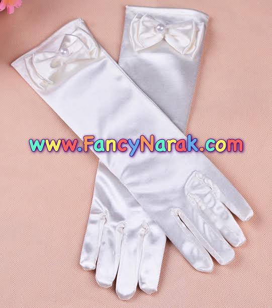 ถุงมือเด็กสีขาว ผ้ามัน ยาว 11.5 นิ้ว